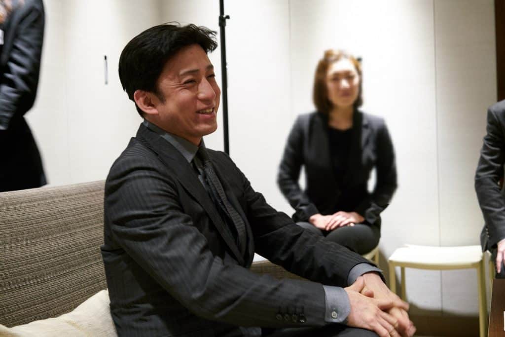 颯爽と登場された染五郎氏は凛としたスーツ姿で、ご登場後、お渡し会を実施したお部屋が一瞬にして華やかになりました。